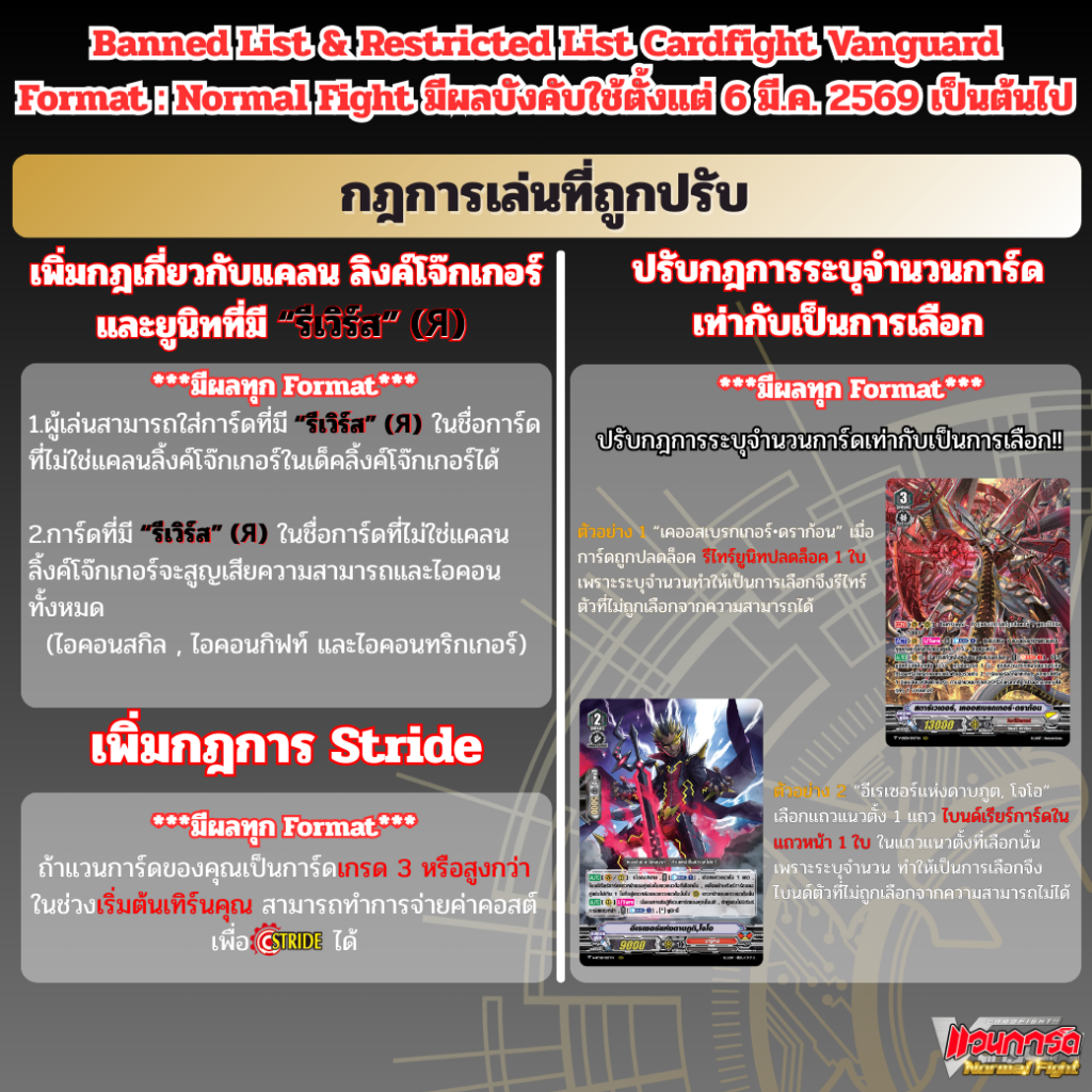 ประกาศ!! ข้อจำกัดและเงื่อนไขใหม่ (Restricted List) ที่จะถูกเพิ่มเข้าไปในการ์ดไฟท์!! แวนการ์ด ไทย นะครับ