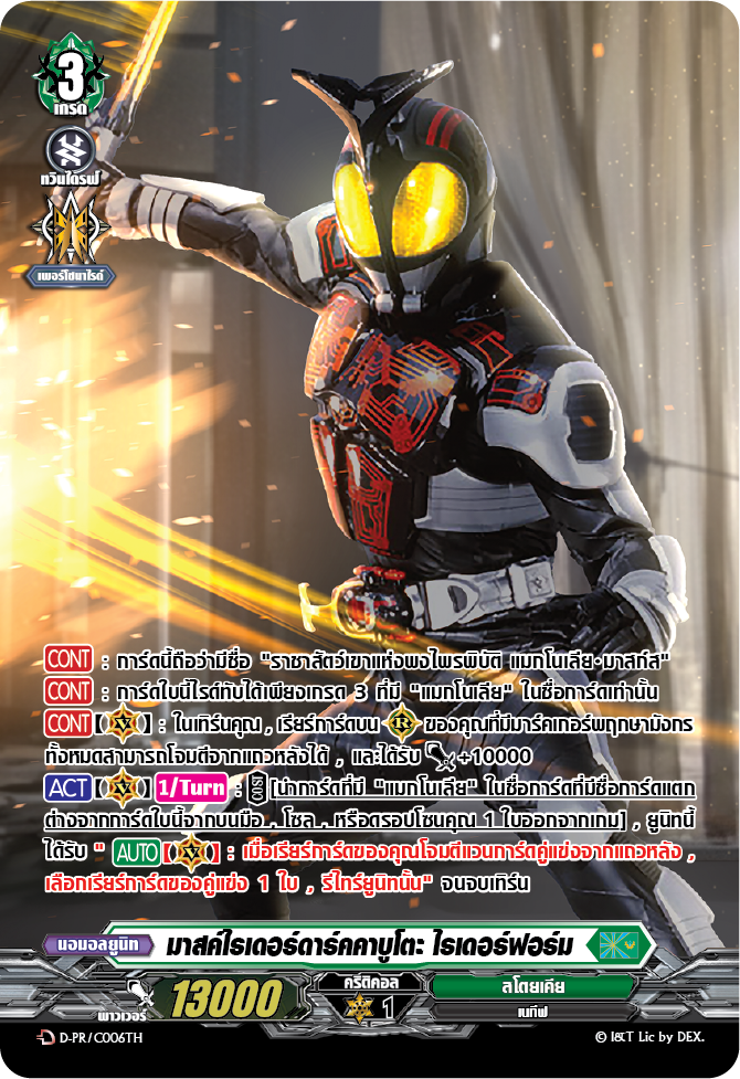 นำใบเสร็จมารับการ์ด “มาสค์ไรเดอร์ดาร์คคาบูโตะ ไรเดอร์ฟอร์ม” 1 ใบ” + สิทธิ์จับฉลากรับรางวัลพิเศษ 1 ครั้ง ที่โซนแลกของพรีเมี่ยม สามารถใช้ร่วมกับ Pro 200 500 บาทได้