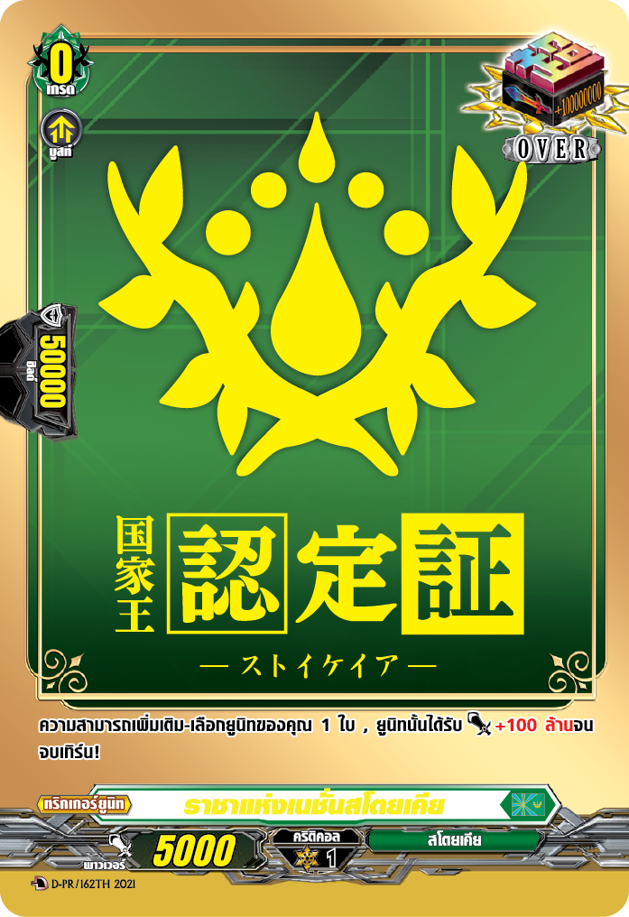 – การ์ด Stoicheia Nation King ปั๊มทอง 1 ใบ